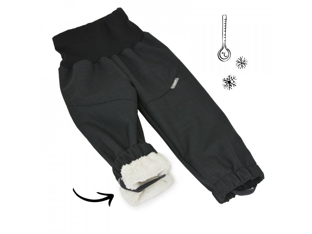 Batolecí zimní softshellové kalhoty s beránkem light, černá žíhaná