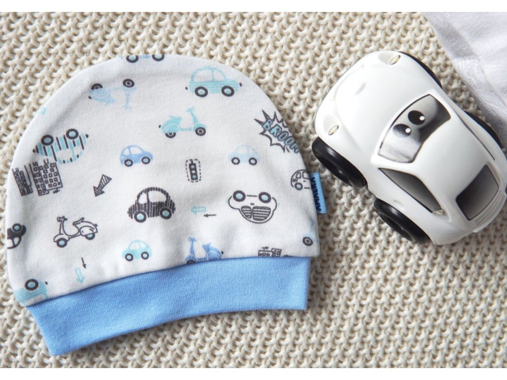 Jednovrstvá bavlněná čepička v kouzelném potisku s autíčky. Slušivá na hlavičce. Vhodná od jara do podzimu. Dokola elastický náplet z...