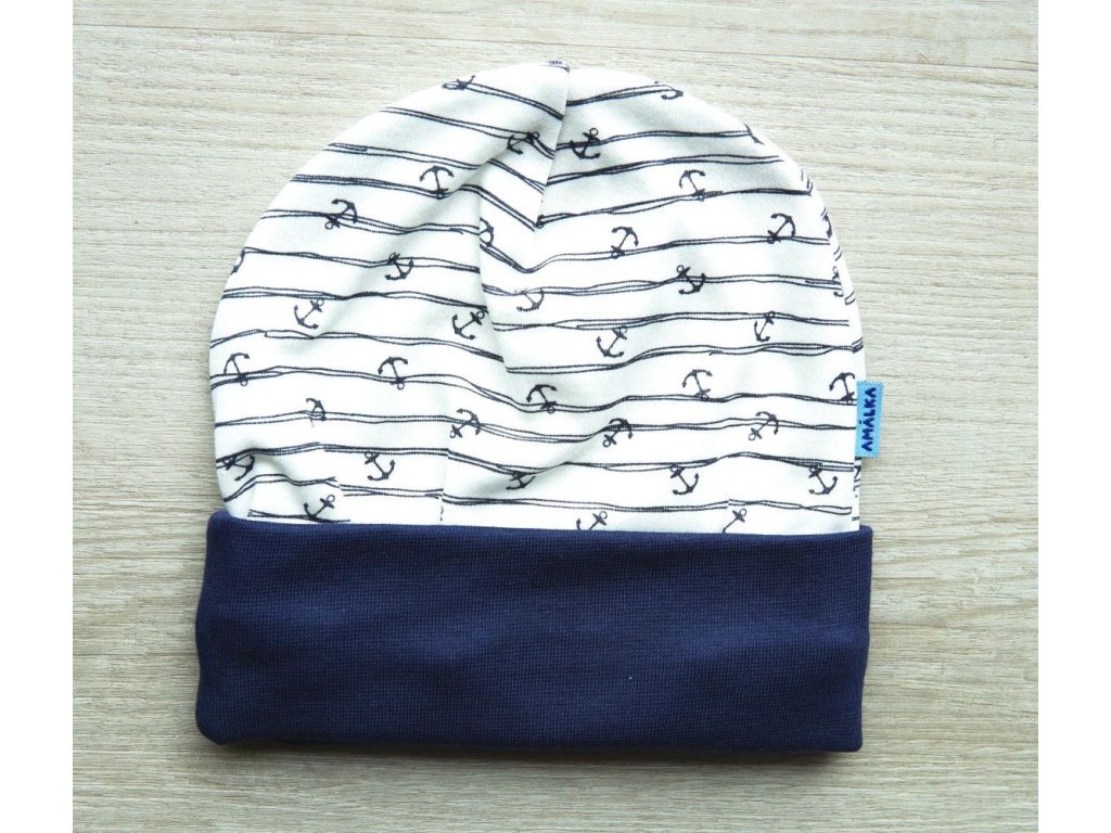 Bavlněná čepička s dvojitým přeloženým nápletem v kouzelném potisku kotviček. Velmi slušivá na hlavičce. Nepadá do očí a netlačí. Vhodná od jara do...