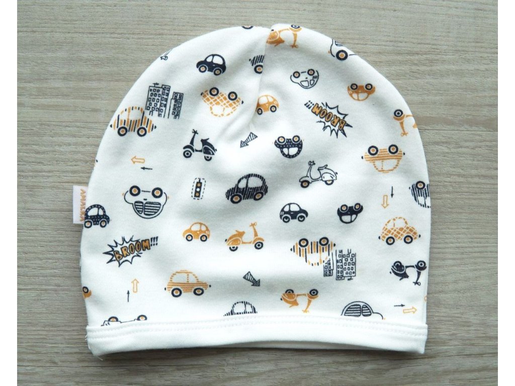 Bavlněná kojenecká čepička saporka autíčka v.56-68