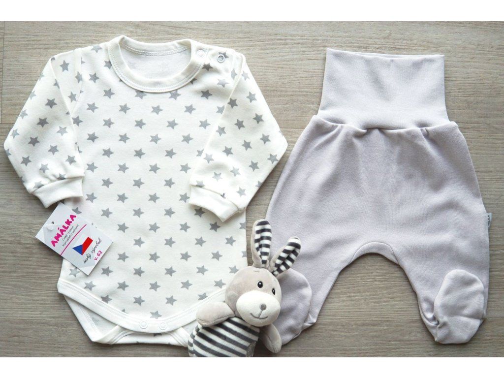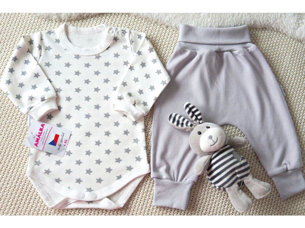 Bavlněná souprava smetanová/šedá, Magické hvězdičky