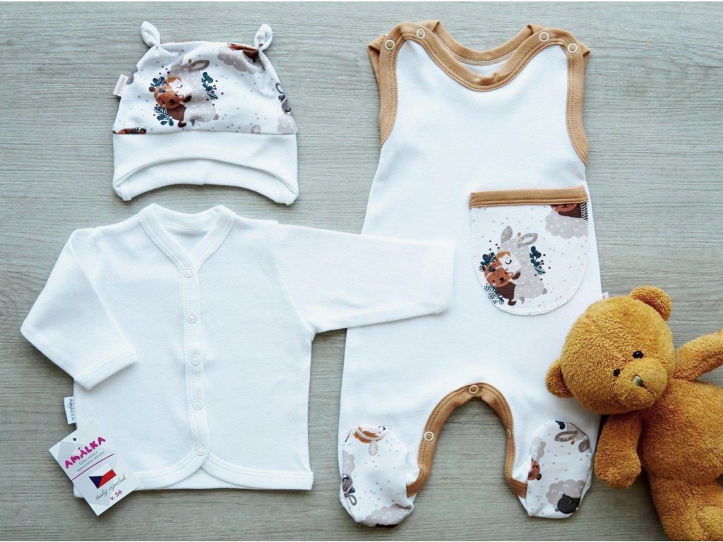 Kouzelná souprava v neutrálních barvičkách s kapsou roztomilých spících miminek.