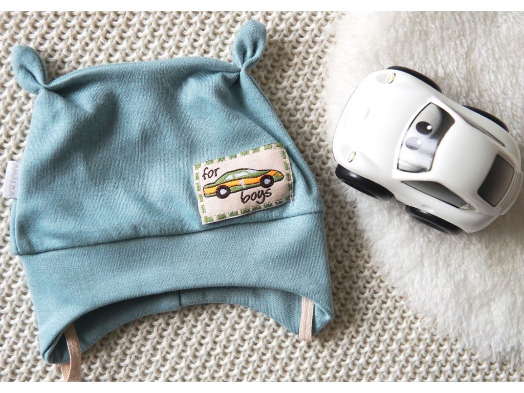 Kvalitní zavazovací čepička s ozdobnými oušky.