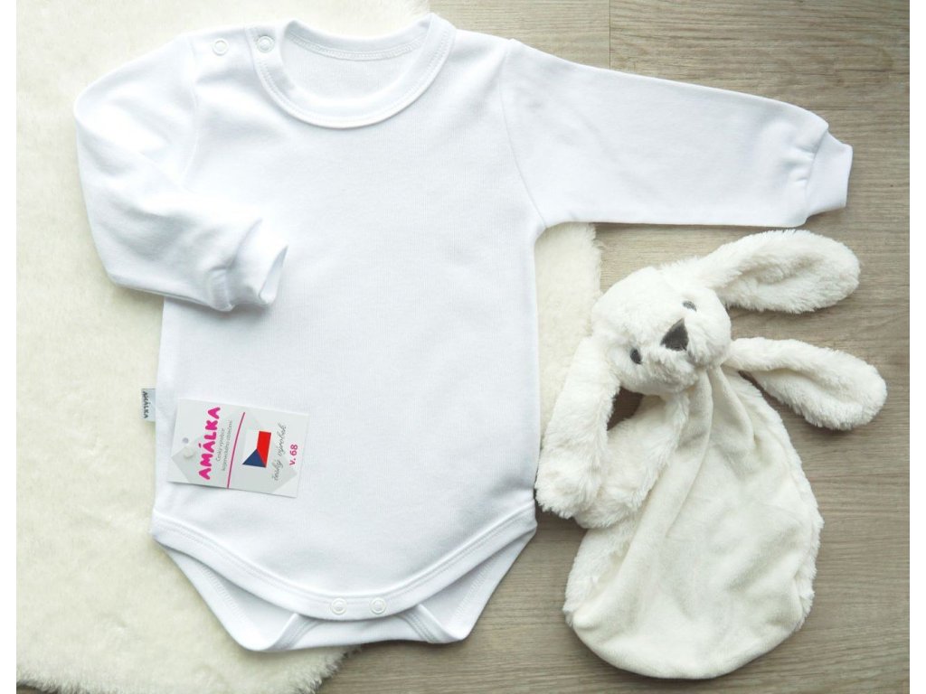 Bavlněné bílé body s dlouhým rukávem ušité z velice jemné a měkké bavlny.