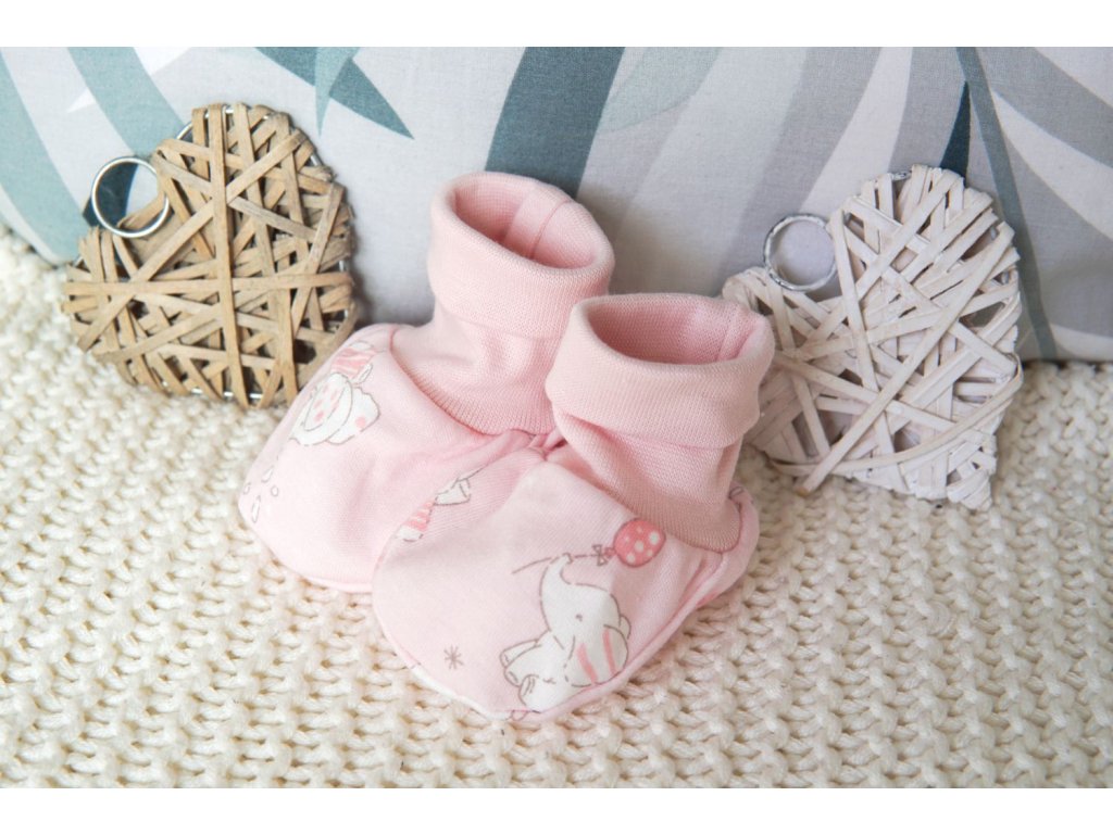 Bezvadné, kojenecké capáčky z jemného bavlněného materiálu. Kouzelný potisk slonečků ve světle růžové barvě.