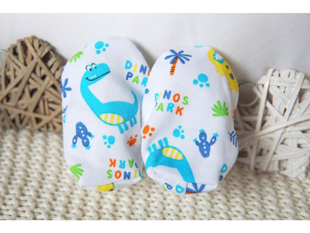 Kvalitní, kojenecké capáčky z bavlněného materiálu. Kouzelný potisk zvířátek dino.