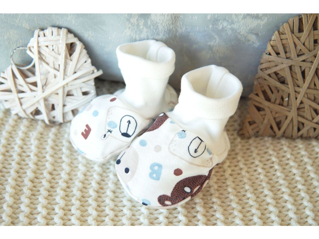 Bavlněné capáčky pro miminko, Méďa s písmenky