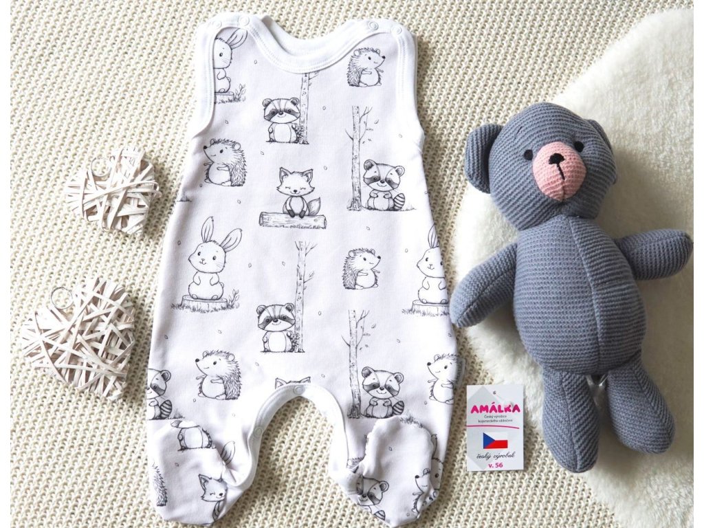 Bavlněné dupačky digitální potisk, kamarádi zvířátka