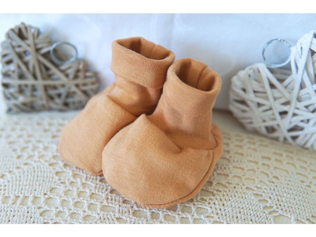 Kvalitní, kojenecké capáčky z jemného bavlněného materiálu v barvičce skořicové.