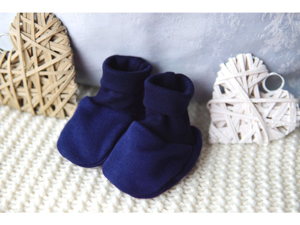 Kvalitní, kojenecké capáčky z jemného bavlněného materiálu v temně modré barvě.