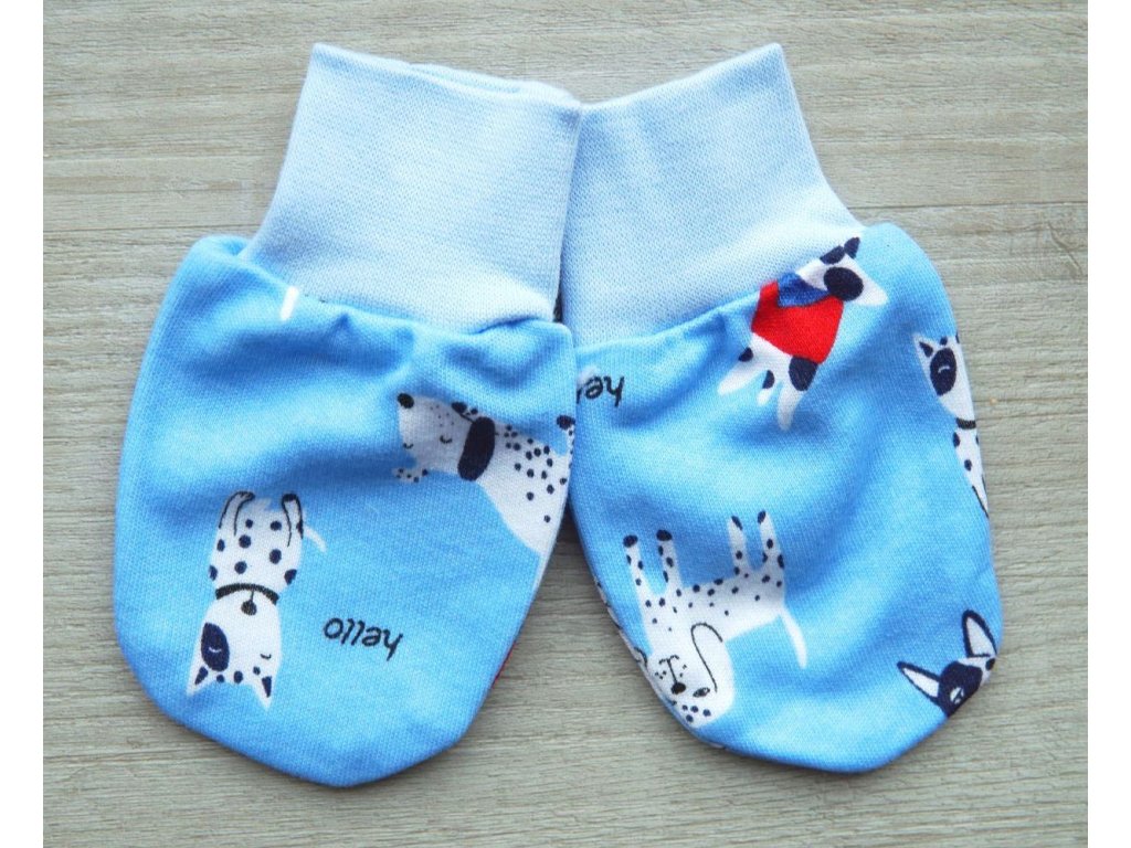 Bavlněné modré kojenecké rukavičky, pejsci