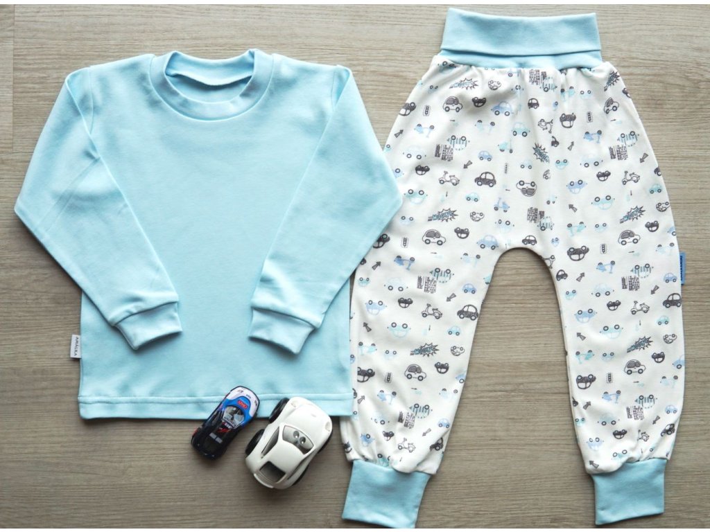 Bavlněné pyžamo s autíčky, modré