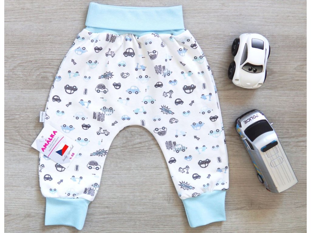 Bavlněné rostoucí kalhoty, modré autíčka