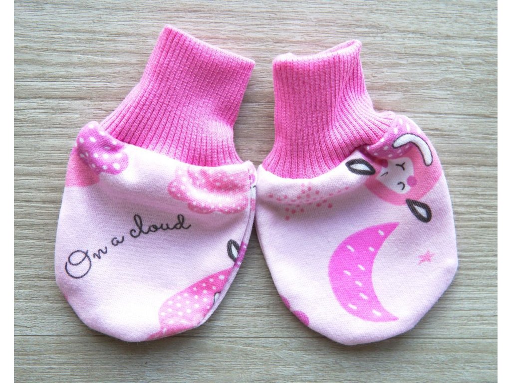 Bavlněné rukavičky pro miminko, růžové ovečky