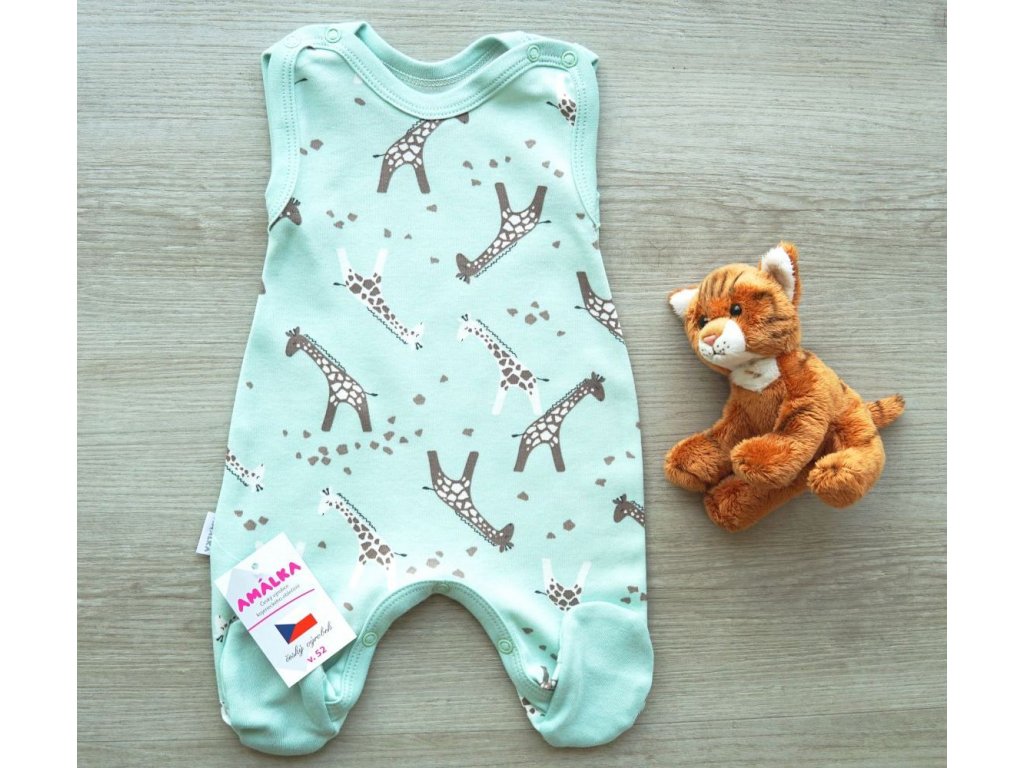 Bavlněné zelené mint dupačky, žirafy