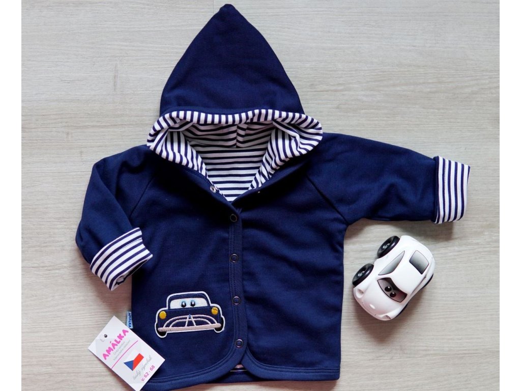 Bavlněný dvojitý kabátek tmavě modrý, Autíčko