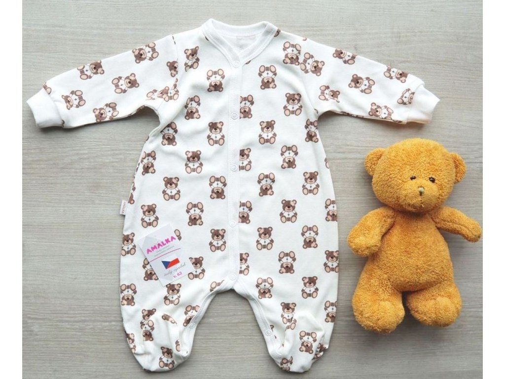 Kvalitní overal nejen na spinkání, ale také pro běžné denní nošení. Roztomilý potisk medvídků v kombinaci barviček oříškové a smetanové....