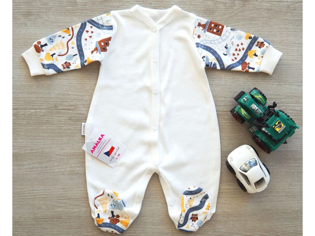 Bavlněný propínací overal smetanový, veselé cestičky