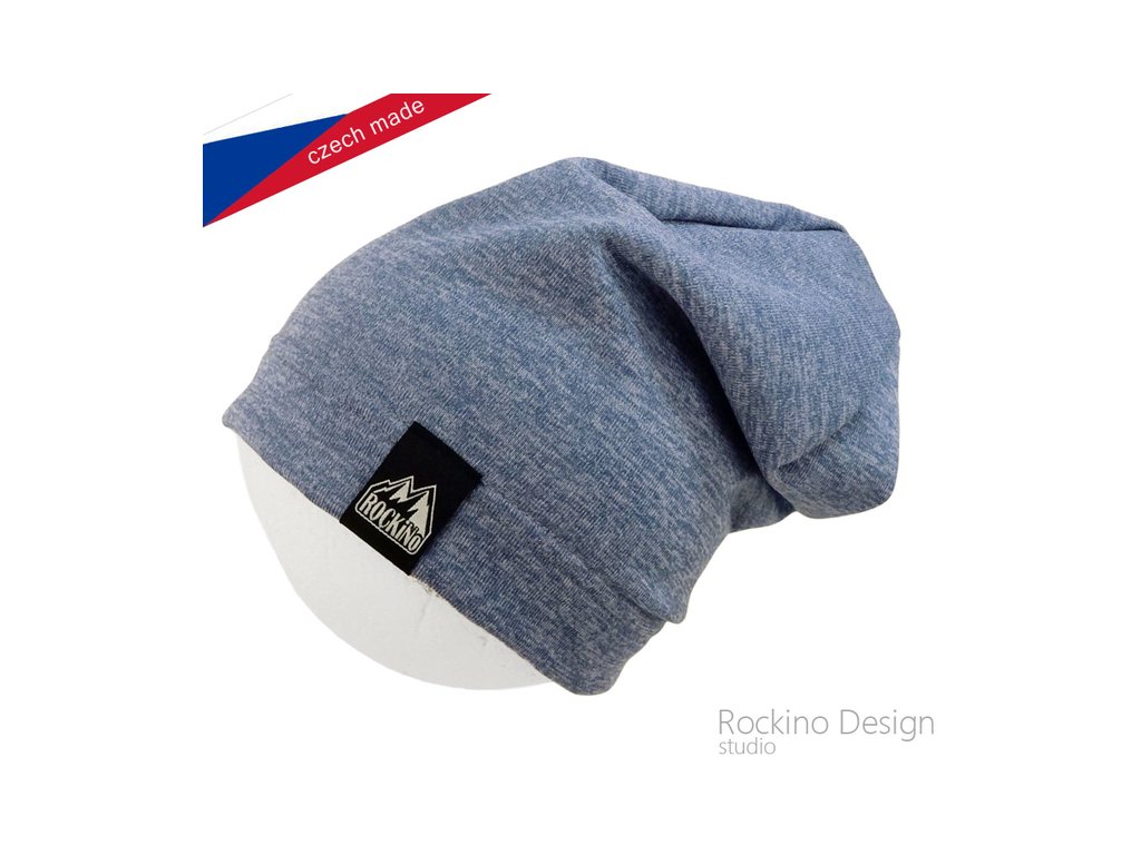 Chlapecká čepice padeného střihu b melírovém odstínu. Nášivka české značky Rockino.