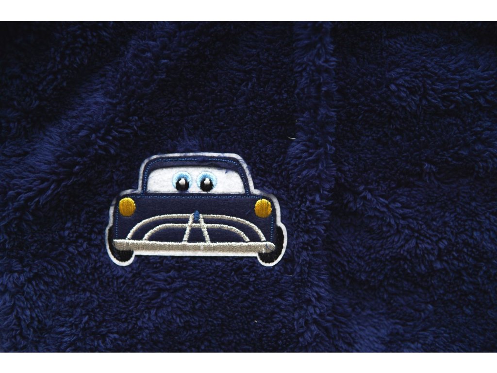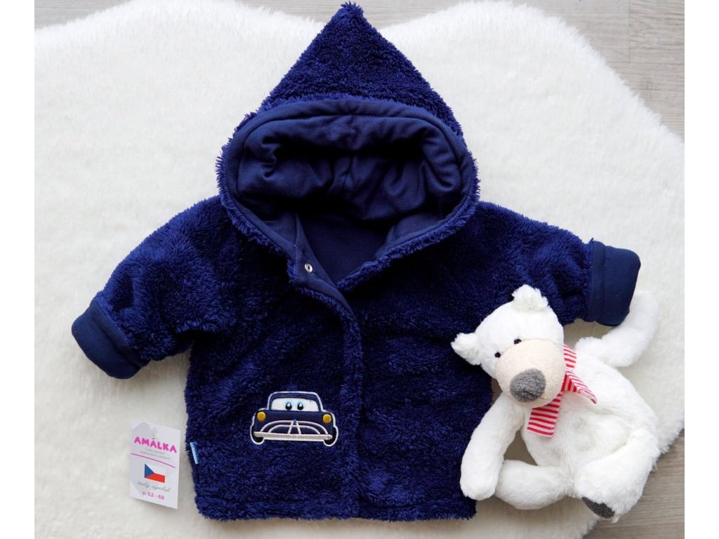 Chlupatý zateplený kabátek autíčko, tmavě modrý