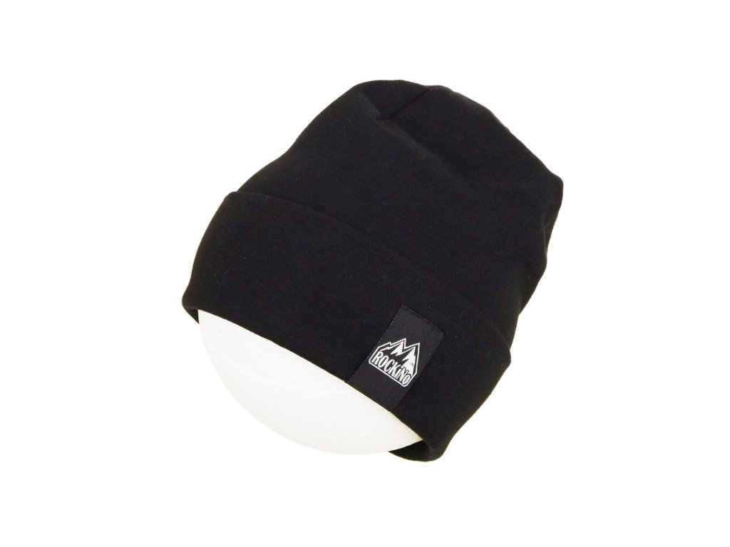 Dětská, bavlněná čepice v černé, neutrální barvě. Použitým materiálem je kvalitní bavlněný úplet.