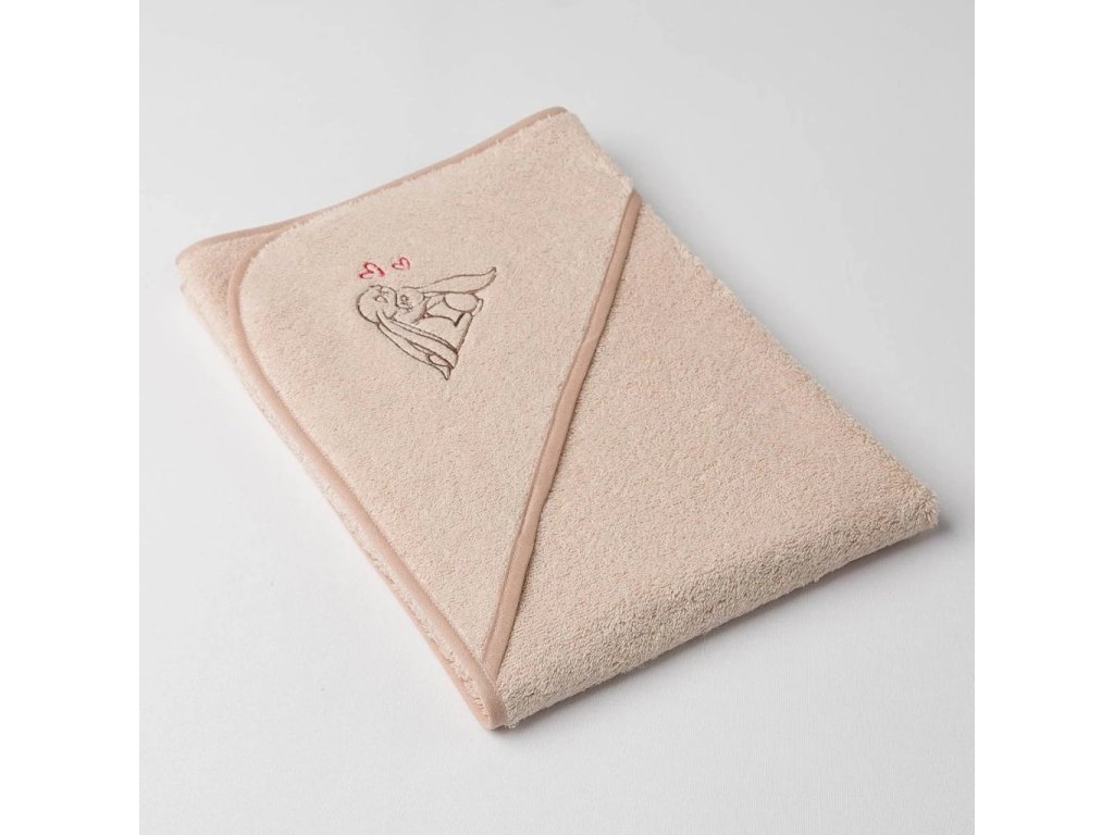Dětská osuška Veba s kapucí béžová s výšivkou Zajíček mazlíček béžová lemovka