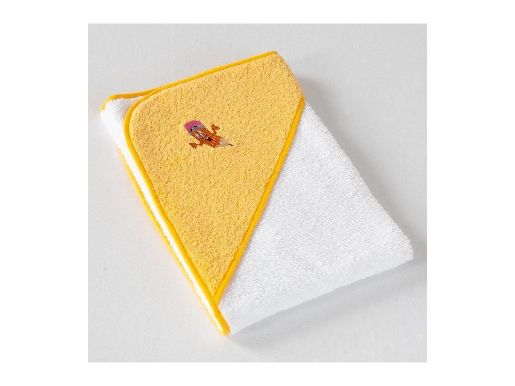 Dětská osuška Veba s kapucí bíložlutá s výšivkou Pastelka, žlutá lemovka