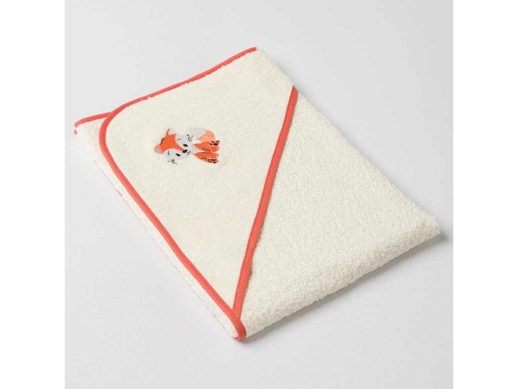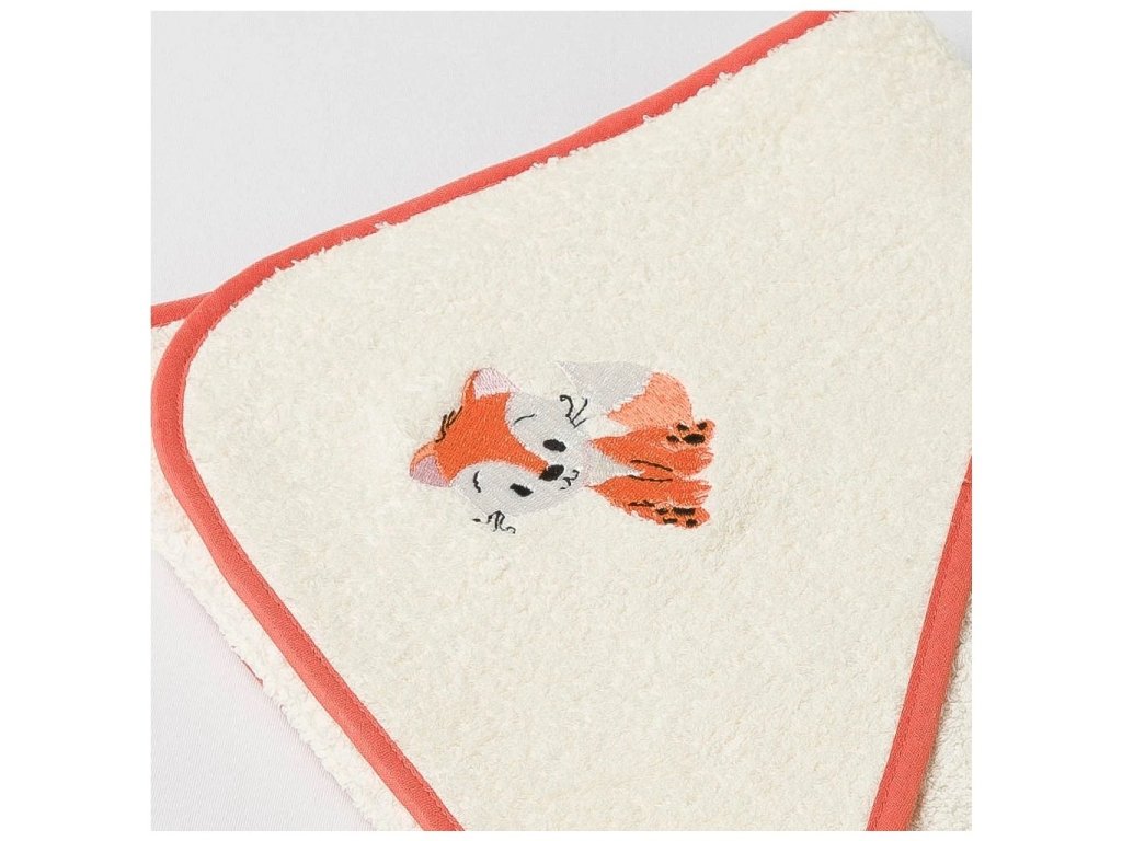 Dětská osuška Veba s kapucí jasmínová s výšivkou Lištička skořicová lemovka