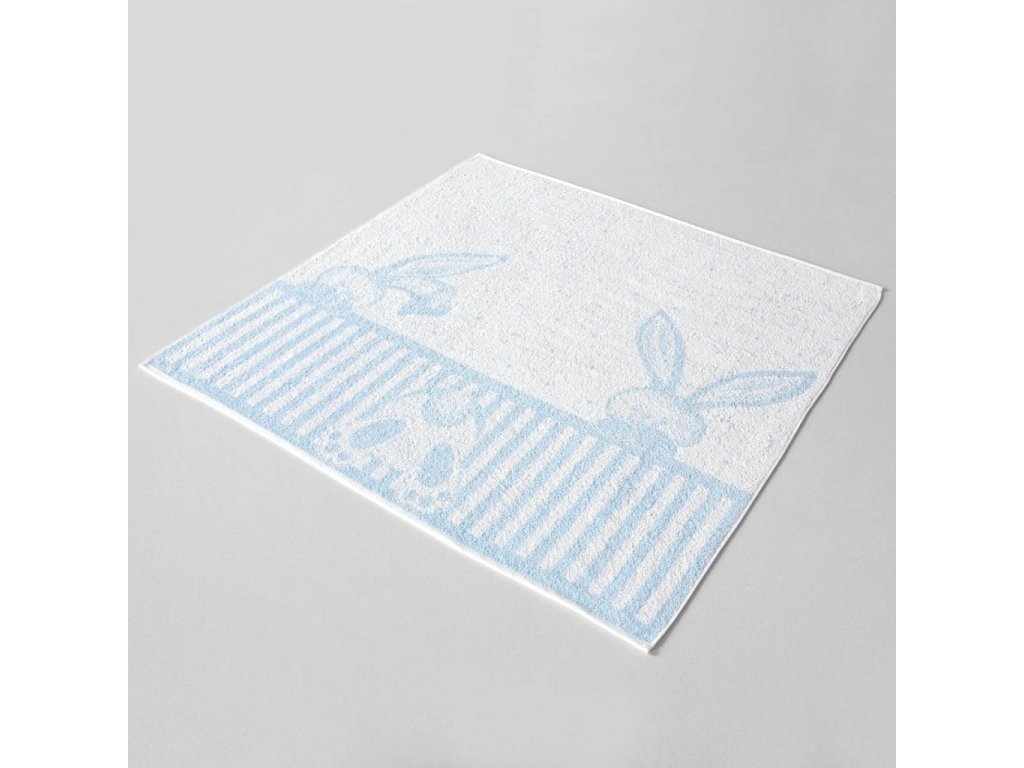 Oblíbený vzor roztomilého zajíčka dětských froté osušek na koupání ve světle modré barvičce.