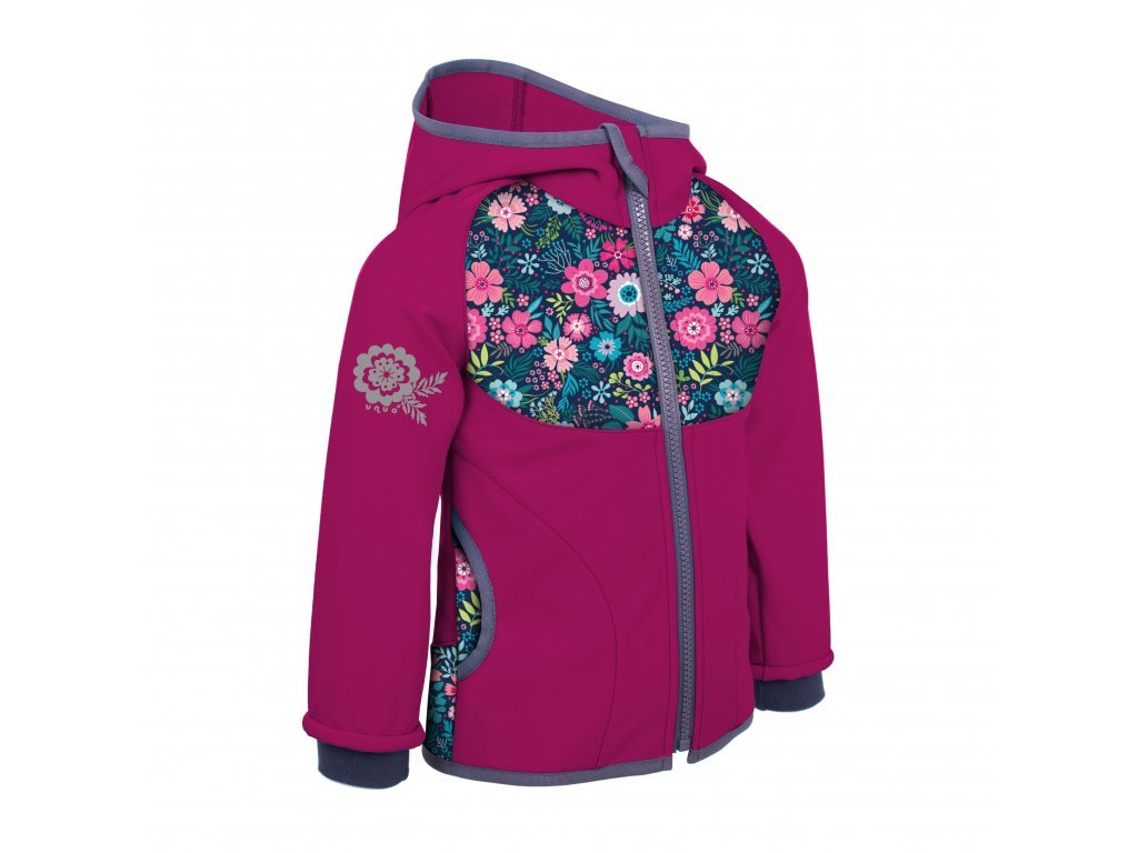 Dětská softshellová bunda bez zateplení, Tm. Růžová Malinová, Květinky