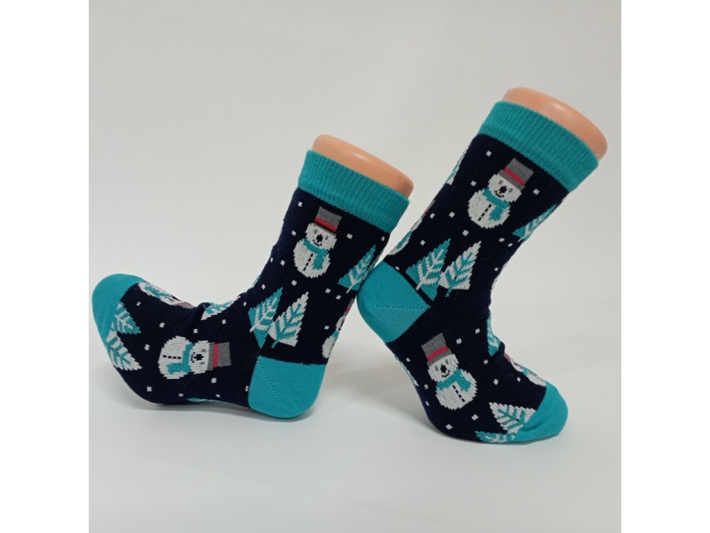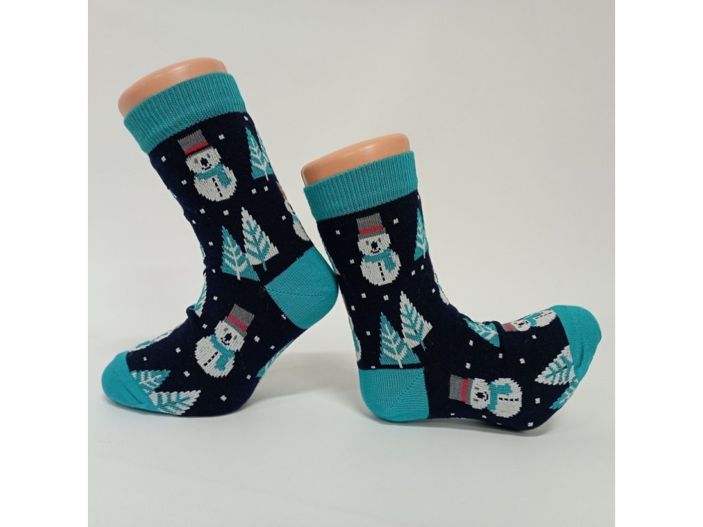 Dětské bavlněné ponožky SNĚHULÁK, tmavě modré
