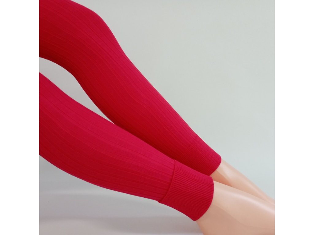 Dětské žebrované legíny v červené barvě. Jsou vyrobeny z kvalitní dlouhovlákné bavlněné příze.