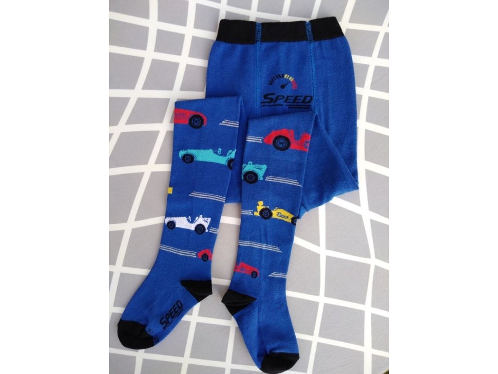 Dětské bavlněné punčocháče s auty. Punčocháče se příjemně nosí díky vysokému podílu bavlny, elastan zajišťuje, aby dětem dobře padly a dlouho si udržely svůj tvar. Tyto dětské punčocháče mají komfortní pas, který se nezařezává ani nesklouzává. Pro větší pohodlí při nošení je do punčocháčů všitý klín. Plochý šev v oblasti prstů a sedové části.