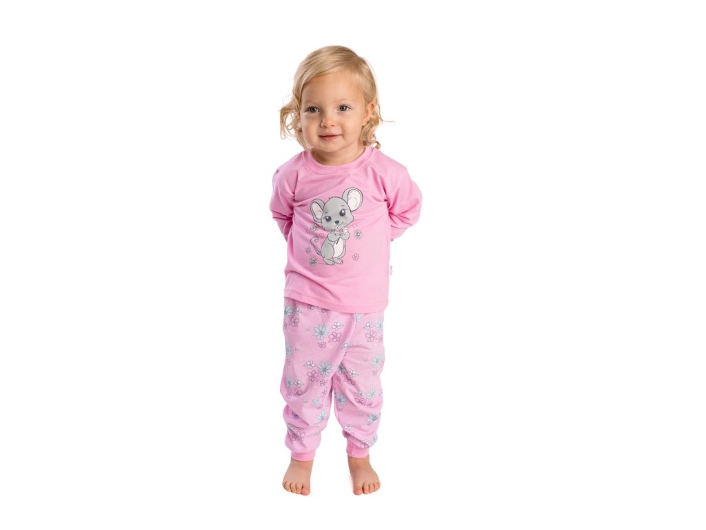Růžové pyžamo s obrázkem roztomilé myšky  pro malé princezny. Příjemná 100% bavlna ideální pro klidnou noc a krásné sny. Pyžamo je ušito od střihu až po zabalení v České republice.