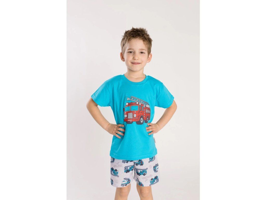 Dětské pyžamo hasičské autíčko, krátký rukáv