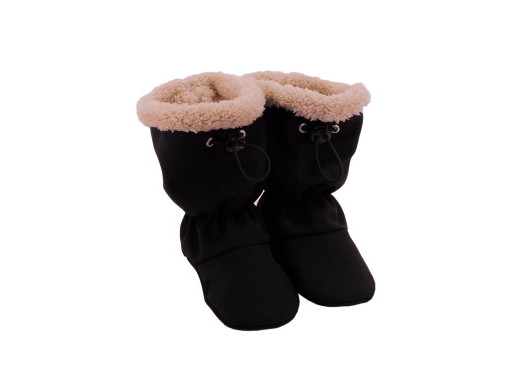 Pohodlné dvouvrstvé botičky do kočárku. Vhodné od podzimu do jara jako velmi dobré zateplení studených nožiček. Vrchní vrstva softshelI v prodyšné verzi 5000/5000, vnitřní vrstva příjemný polar-fleece, vrchní díl podšívky kožešinka Luna. Ideální jako první botičky pro miminka od narození až do věku cca 15 měsíců.