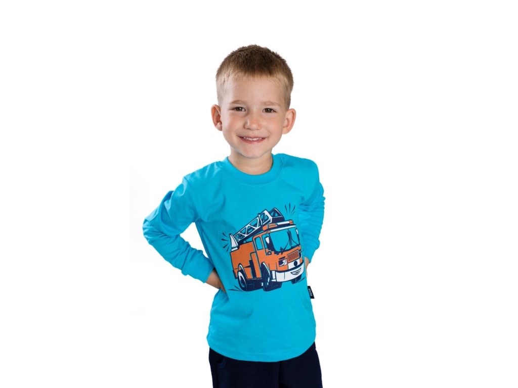 Originální chlapecké bavlněné tričko pro každého malého hasiče. Vhodné na doma nebo do školky.Motiv hasičského auta promění vašeho malého klučinu rázem v hasiče!