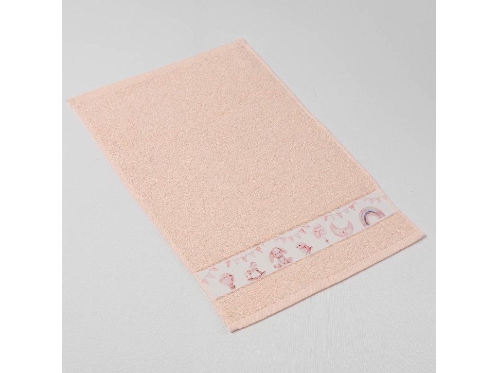 Dětský ručník tisk svět hraček - pohádkové dobrodružství, lososový 30x50cm
