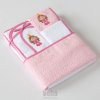 Dětský set pro nejmenší. Osuška 100x100 cm, ručník 50x30 cm žínka a slinták. Osuška a slinták je doplněn o barevnou výšivku princezny.