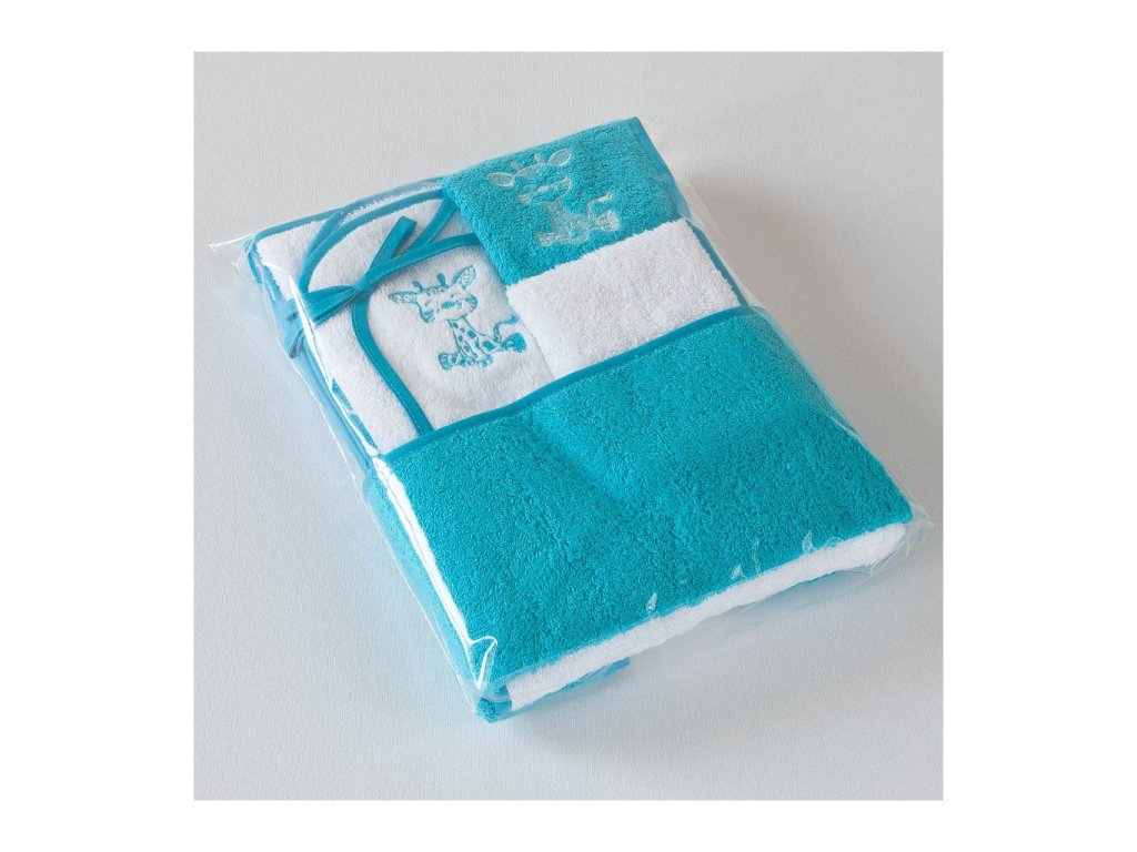 Dětský set žirafa - osuška 100x100, slinták, ručník + žínka