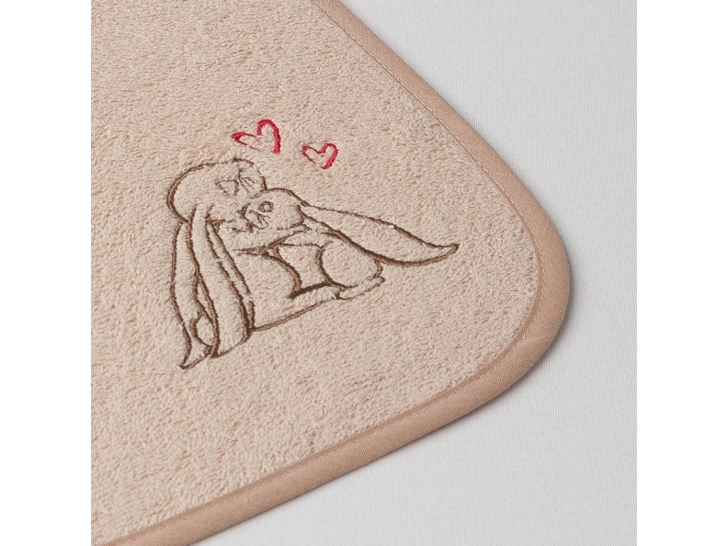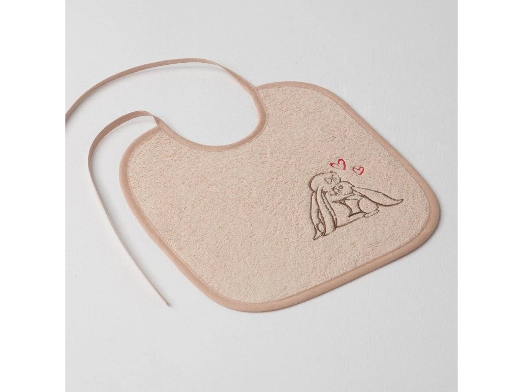 Dětský slintáček Veba béžová s výšivkou Zajíček mazlíček béžová lemovka