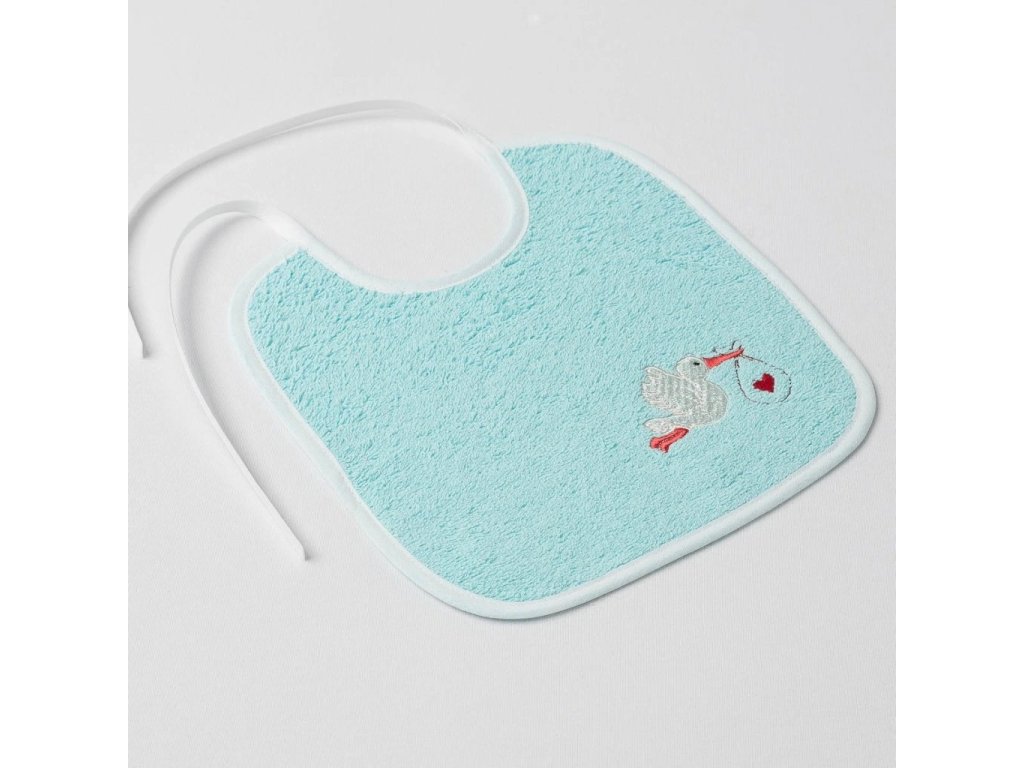 Dětský slintáček Veba mintová s výšivkou Čapí pošta bílá lemovka