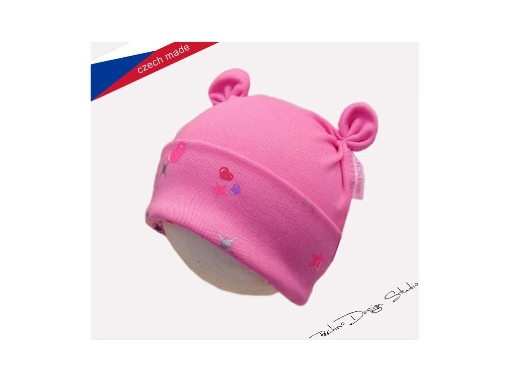 Dětská přechodová čepička. Tento model nemá šňůrky, jde o tzv. "nasazovačku". Je zdobená kvalitním sítotiskem.