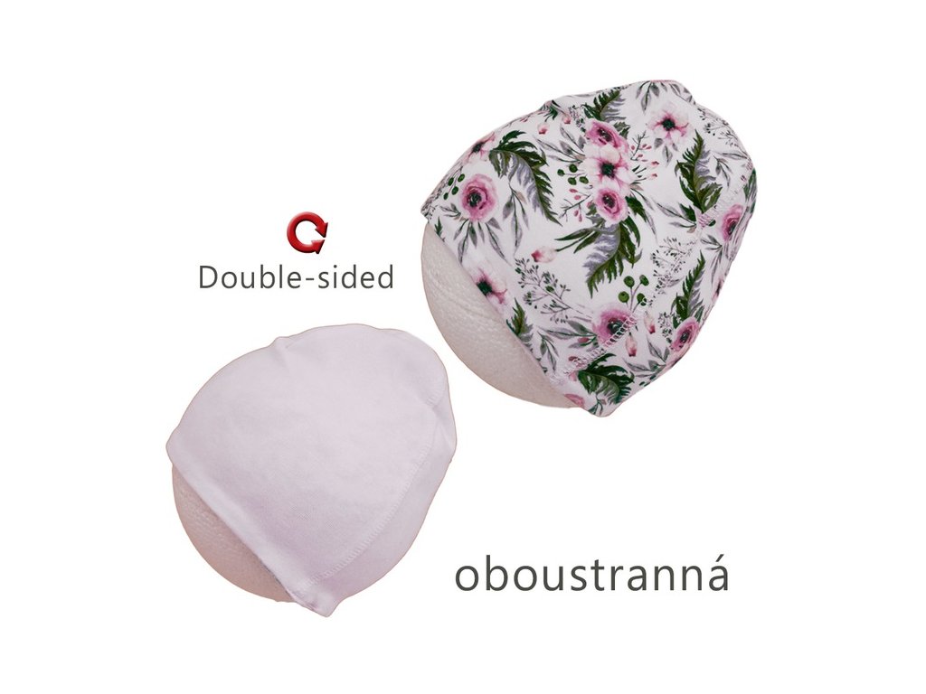Oboustranně nositelná dívčí čepice. Dvojitý materiál, každý v jiném designu. Dvouvrstvý, úpletový materiál zajišťuje dobré zateplení i pružnost modelu....