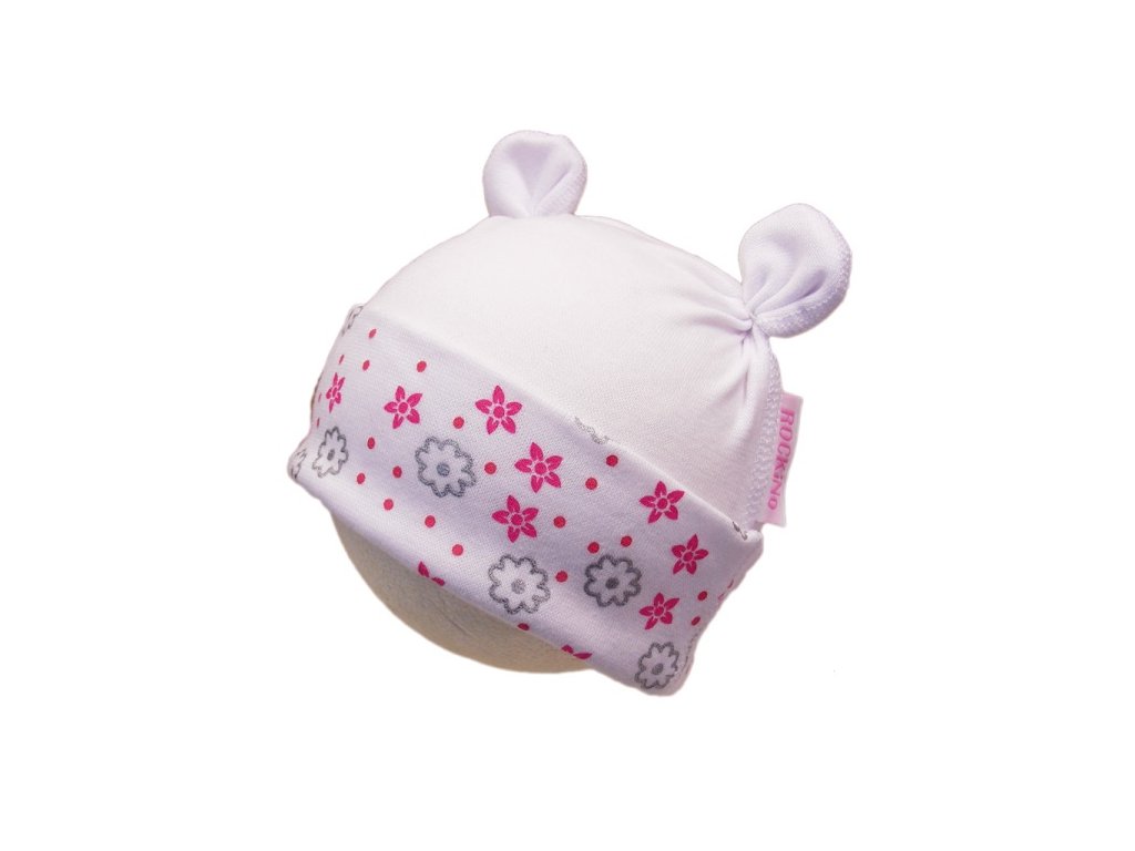 Dívčí jarní čepička s přeloženým lemem, zdobená kvalitním sítotiskem.