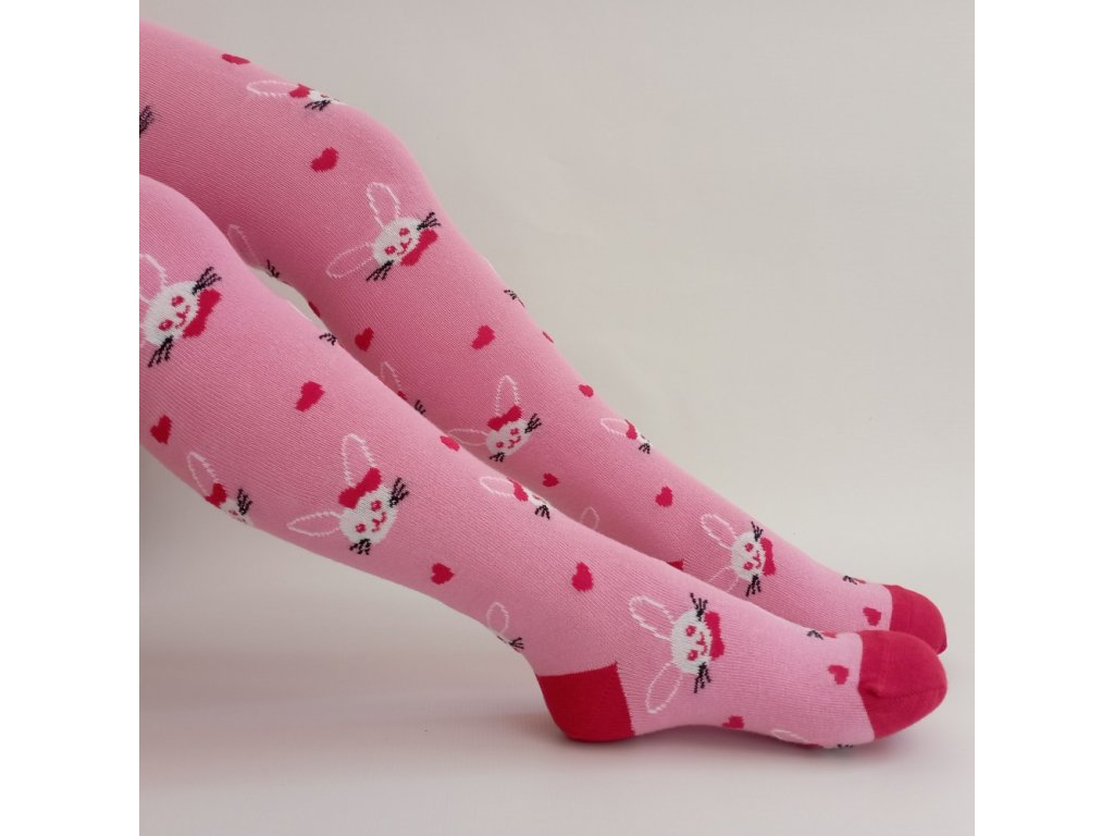 Bavlněné punčocháče se zajíčky v růžové barvě.