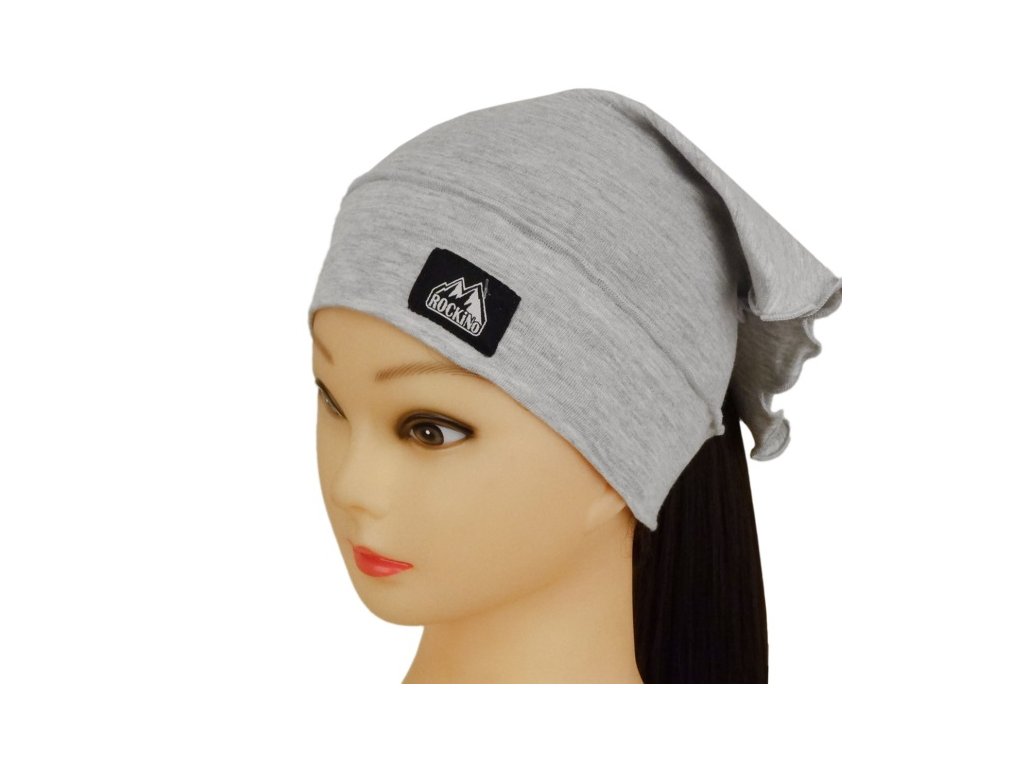 Dívčí šátek ušitý z pružného úpletu. Přes čelo dvouvrstvý patent, kvalitní obšití. Nášivka české značky.