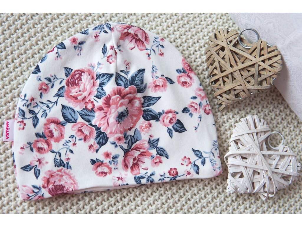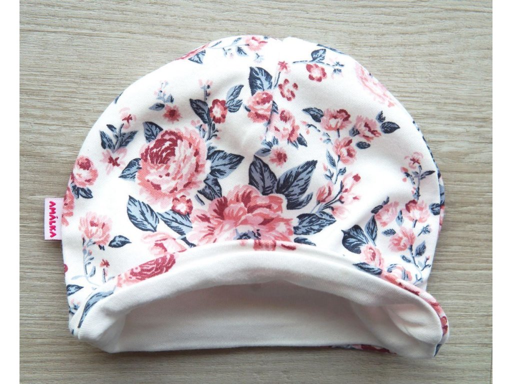 Dvojitá bavlněná čepička smetanová, pudrové květy