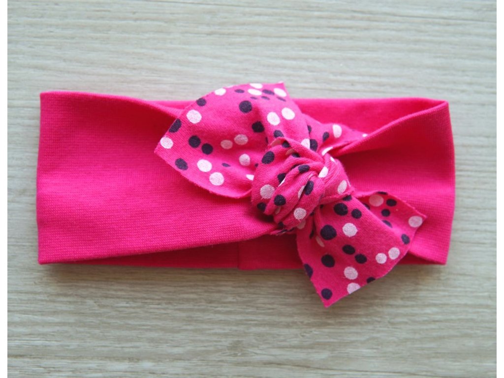 Elastická čelenka malinová, pentle puntíky