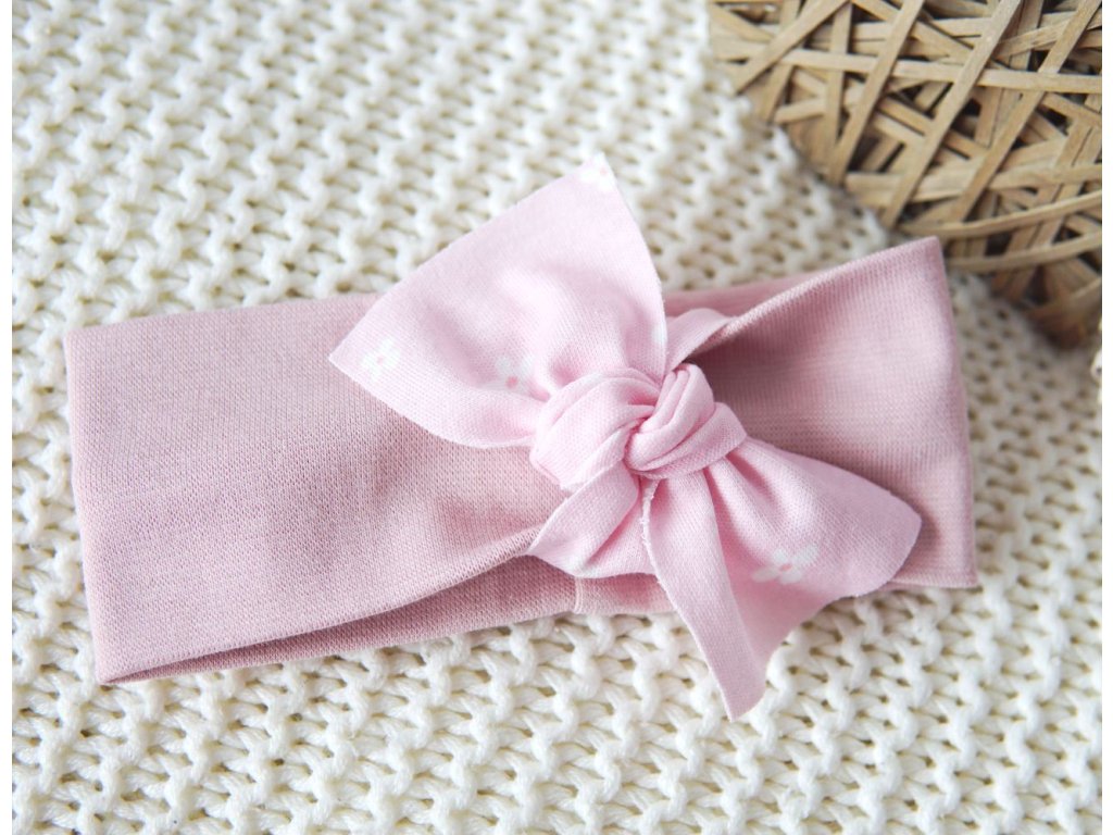 Elastická čelenka pudrově růžová, pentle malé květinky